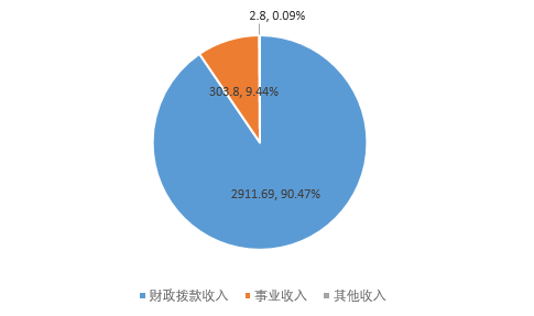1.财政拨款收入2911.69万元,占收入合计的90.47%。其中:一般公共预算财政拨款收入2911.69万元,占收入合计的90.47%;政府性基金预算财政拨款收入0万元,占收入合计的0%;国有资本经营预算财政拨款收入0万元,占收入合计的0%;