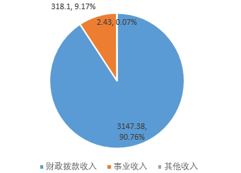 1.财政拨款收入3147.38万元,占收入合计的90.76%。其中:一般公共预算财政拨款收入3147.38万元,占收入合计的90.76%;政府性基金预算财政拨款收入0万元,占收入合计的0%;国有资本经营预算财政拨款收入0万元,占收入合计的0%;